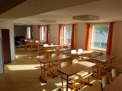 8 plně vybavených učeben s tabulemi a TV, ideální pro školy v přírodě, školní výlety a firemní školení.